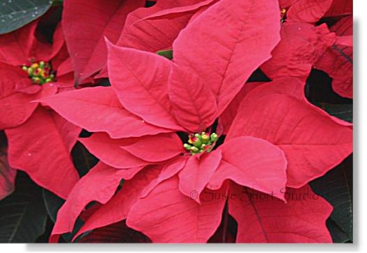 | The high resolution digital reference photo below (poinsettia 04-188a) was selected from Susie Short's personal photo collection of poinsettias. The Single Photo print is a high quality color laser print on heavy 8.5 x 11 paper. The Combo Packet is formatted to fit either 5 x 7 or 6 x 8 watercolor cards and includes a high quality color laser print and a transfer painting pattern / drawing guide. The Super Packet includes both option 1 and 2. |