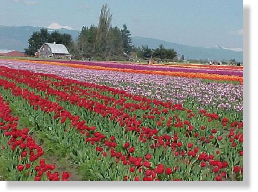 | Susie Short is an accomplished watercolor artist, teacher, and photographer. The high resolution digital reference photo below (Tulip Field 27) features a field of brilliant red tulips focused in the foreground with white and pink tulips in the middle ground, and in the distance are barns and buildings typically associated with farming. The high quality color the middle ground, and in the distance are barns and buildings typically associated with farming. The high quality color laser print comes on 8.5 x 11 heavy paper and may be purchased with/or without the transfer painting patterns. |